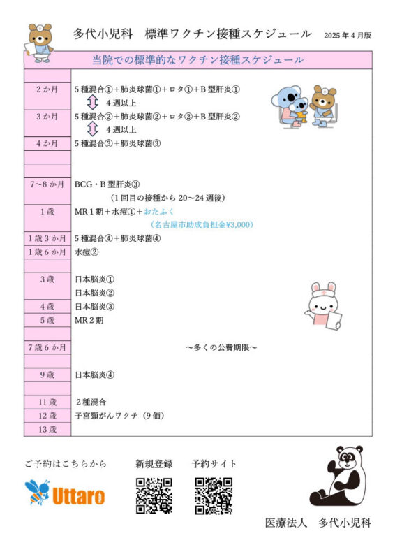 当院の標準的なワクチン接種スケジュール
